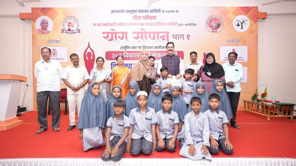 यांनी घेतली मेहनत: या उपक्रमात सहभागी विद्यार्थी, शिक्षक व शाळांना प्रमाणपत्र व स्मृतीचिन्ह देवून गौरविण्यात आले. देशभरात राबविण्यात आलेल्या या उपक्रमाच्या समन्वयकाची भूमिका दत्ता भांदुर्गे यांनी पार पाडली. योगशिक्षक प्रवीण पाठक, वैष्णव कोरडे व दीपांशु सोलंकी यांनी शाळांशी समन्वय साधला. श्रीकांत कासट, अभिजीत गाडेकर, प्रमोद मेहेत्रे, वैभव कुलकर्णी, भोलेश्वर गिरी, अंकित वाघमारे, अनिरुद्ध रहाणे यांनी परिश्रम घेतले. गीता परिवाराचे संगमनेर शाखाध्यक्ष संजय कर्पे यांनी कार्यक्रमाचे सूत्रसंचालन केले.