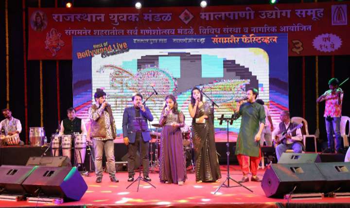 प्रेक्षकांना खिळवून ठेवले: चित्रपट सृष्टीतील पार्श्वगायनात अल्पावधीतच उंची गाठणार्या चैतन्य कुलकर्णी याच्यासह गौरी गोसावी, रवींद्र खोमने व श्रावणी महाजन यांनी झी, सोनी आणि स्टार या वाहिन्यांवरील विविध कार्यक्रमांतून आपली प्रतिभा ठळकपणे उमटविली आहे. या तरुण गायकांच्या सुमधूर आवाजातील नव्या-जून्या हिंदी चित्रपट गीतांवर आधारित असलेला ‘द बेस्ट ऑफ बॉलीवूड लाईव्ह’ हा बहारदार कार्यक्रम ऐकण्याची व पाहण्याची संधी संगमनेरकरांना मिळाली. तुडूंब भरलेल्या प्रेक्षागारासह रिझीम कोसळणार्या पावसाच्या साक्षीने सुरु झालेल्या या कार्यक्रमाने एकामागून एक गाजलेली गाणी सादर करीत उपस्थितांना शेवटपर्यंत खिळवून ठेवले.