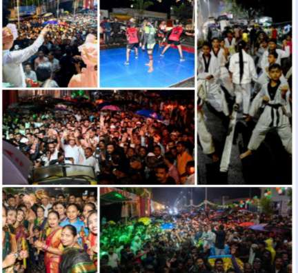 या मार्गावर सनई चौघडे ढोल ताशांचा निनाद, वीज दिव्यांचा लखलखाट, टाळ्यांचा गजर, फटाक्याची आतिषबाजी यात साहशी खेळ, दांडपट्टा तलवारबाजी या खेळांनी लक्ष वेधले. बास्केटबॉल, स्केटिंग, पारंपारिक नृत्य, झुंबा, तायकोंडो, कबड्डी, लाठी-काठी, तलवारबाजी, फुगडी, वारकऱ्यांचे भजन, संभळ वाद्य याच्यासह अनेक तरुणांनी परिधान केलेले पारंपारिक ड्रेस महिलांनी घातलेल्या पैठण्या, सुहासिनीनी केलेली ओवाळणी या कार्यक्रमातून हा सोहळा पार पडला. मालपाणी परिवाराच्यावतीने आयोजित करण्यात आलेला आर्यनगाला व इमॅजिका ऑर्केस्ट्रा याला प्रतिसाद मिळाला.