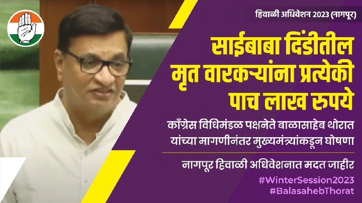मृत्यू झालेल्या वारकऱ्यांच्या कुटुंबीयांना आणि जखमींना मुख्यमंत्री सहाय्यता निधीतून मदत मिळावी, यासाठी आपण स्वतः मुख्यमंत्री सहाय्यता कक्षाशी संपर्क साधला होता. मात्र अद्याप पर्यंत ही मदत मिळालेली नाही. मुख्यमंत्री महोदयांनी ही मदत जाहीर करण्याची मागणी थोरात यांनी सभागृहात केली.