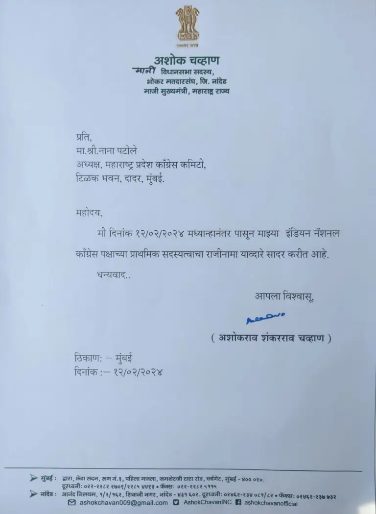 संगमनेर – काँग्रेसला मोठा धक्का देत माजी मुख्यमंत्री अशोक चव्हाण यांनी काँग्रेस सदस्यत्वाबरोबर आमदारकीचा राजीनामा दिला आहे. तसे पत्र त्यांनी विधानसभा अध्यक्ष राहुल नार्वेकर आणि काँग्रेसचे प्रदेशाध्यक्ष नाना पटोले यांना दिले आहे. आपल्या राजीनाम्यासंदर्भात चव्हाण यांनी ‘एक्स’वर माहिती दिली असून येत्या १५ फेब्रुवारीला ते देशाचे गृहमंत्री अमित शहा यांच्या उपस्थितीत भाजपमध्ये प्रवेश करण्याची शक्यता वर्तवली जात आहे. या पार्श्वभूमीवर आमदार सत्यजित तांबे यांनी केलेले विधान चर्चेत आले आहे.