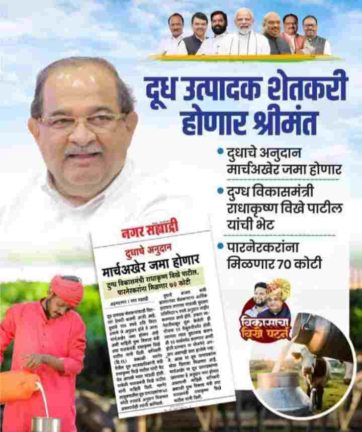 राज्यात दुधाचे भाव सातत्याने कोसळत असताना शेतकरी श्रीमंत होणार, शेतकऱ्याला दुधाचे पैसे मिळणार, मार्चअखेर शेतकऱ्यांच्या खात्यावर पैसे जमा होणार अशी जाहिरातबाजी करून राज्याचे दुग्धविकास तथा महसूल मंत्री राधाकृष्ण विखे पाटील हे शेतकऱ्यांच्या जखमेवर मीठ चोळण्याचा प्रकार करीत असल्याची संतप्त प्रतिक्रिया कॉम्रेड डॉ. अजित नवले यांनी व्यक्त करत दुग्ध विकास मंत्री आणि सरकारचा तीव्र निषेध केला आहे.