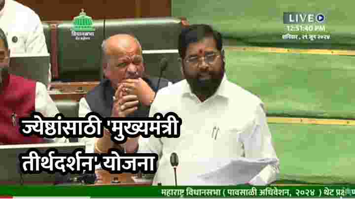 यासंदर्भात विधानसभा सदस्य प्रताप सरनाईक यांनी लक्षवेधी सूचना मांडली होती. त्याला उत्तर देताना मुख्यमंत्री म्हणाले, आमचे सरकार सर्वसामान्यांचे असून काल मांडण्यात आलेल्या अतिरिक्त अर्थसंकल्पामध्ये शेतकरी, कष्टकरी, वारकरी, कामगार, महिला, युवा यांच्यासाठी विविध तरतुदी केल्या आहेत. आपला महाराष्ट्र संतांची भूमी असून दरवर्षी अनेक जण तीर्थस्थळांना भेटी देतात. ज्येष्ठ नागरिकांना तीर्थस्थळांचे दर्शन सुलभपणे होण्यासाठी मुख्यमंत्री तीर्थदर्शन योजना सुरू करण्यात येणार आहे. त्यासाठी सर्वंकष धोरण तयार करून त्याची नियमावली केली जाईल. त्याअंतर्गत आवर्तन पद्धतीने, ऑनलाईन अर्ज मागवून ही योजना राबविण्यात येईल, असेही मुख्यमंत्र्यांनी यावेळी सांगितले.