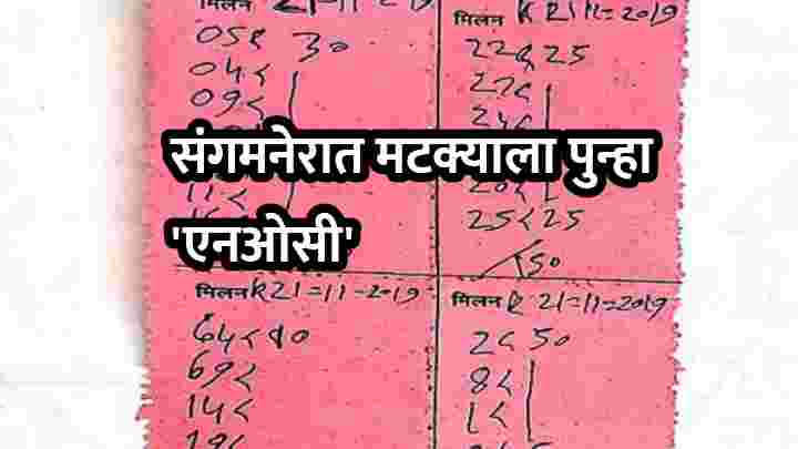 नगर जिल्ह्यातील पोलीस, पोलिसांची पथके यांच्या सततच्या हप्तेखोरीमुळे संगमनेर शहरातले आणि तालुक्यातले मटका अड्डे बंद करण्यात आले असल्याची राळ उठवत छुप्या पद्धतीने आणि मोबाईल ॲपद्वारे साधारण महिनाभर मटका सुरू ठेवल्यानंतर शनिवारपासून नव्या जोमाने धुमधडाक्यात संगमनेर शहर आणि तालुक्यात मटक्याच्या पेढ्या आणि अड्डे सुरू झाले आहेत. पोलीस आणि संगमनेरातल्या मटका किंगमध्ये पुन्हा जुळवाजुळव झाली असल्याची चर्चा सुरू झाली आहे.
