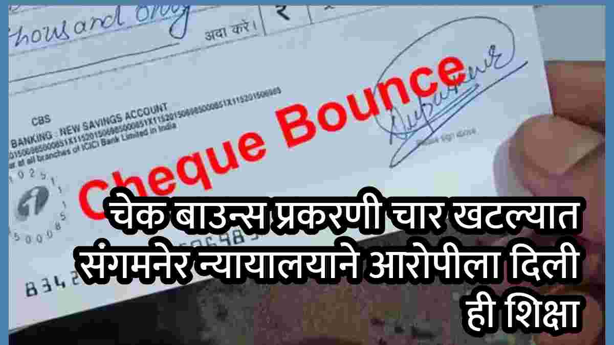 शीतपेयाच्या खरेदीपोटी व्यापाऱ्याला दिलेले चार चेक न वटल्याने तसेच मागणी करूनही आरोपीने पैसे न दिल्यामुळे त्याच्या विरोधात दाखल करण्यात आलेल्या संगमनेर न्यायालयातील चार वेगवेगळ्या खटल्यात न्यायालयाने आरोपीला मोठी शिक्षा ठोठावली आहे.