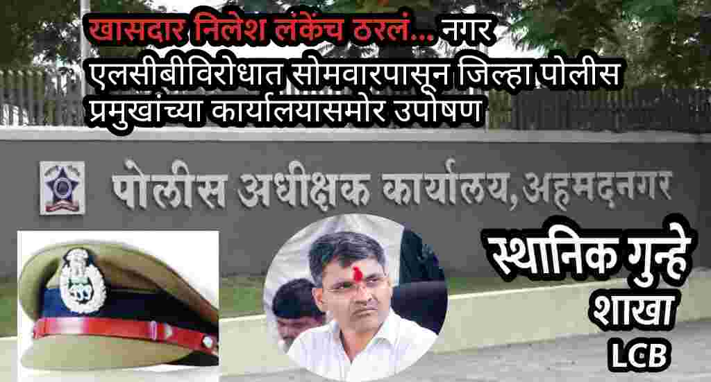 अहमदनगर पोलीस दलातील विशेषत: स्थानिक गुन्हे अन्वेषण शाखेतील (एलसीबी) भ्रष्टाचारा विरोधात मुख्यमंत्री एकनाथ शिंदे उपमुख्यमंत्री तथा गृहमंत्री देवेंद्र फडणवीस दुसरे उपमुख्यमंत्री अजित पवार यांच्यासह वरिष्ठ पोलीस अधिकाऱ्यांकडे खासदार निलेश लंके यांनी एका पत्राद्वारे तक्रार करून देखील आठवडा उलट झाला तरी दखल घेतली गेलेली नाही. त्यामुळे सोमवारपासून (२२ जुलै) लंके यांनी जिल्हा पोलीस अधीक्षक कार्यालयासमोर उपोषण करणार असल्याचे स्पष्ट केले.