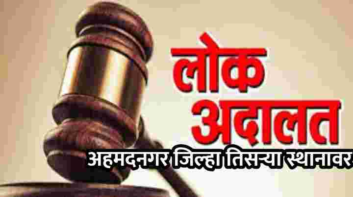 अहमदनगर – नुकत्याच पार पडलेल्या राष्ट्रीय लोक अदालतीमध्ये अहमदनगर जिल्हा तिसऱ्या स्थानावर राहिला आहे. राष्ट्रीय लोक न्यायालयामध्ये ६४ हजार ७२२ प्रकरणे निकाली निघाली असून यामध्ये १ अब्ज ३८ कोटी २२ लाख ५१ हजार ३०४ रुपयांची वसुली झाली आहे.