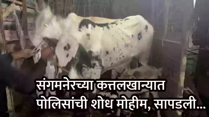 दोन दिवसांच्या शोध मोहिमेनंतर शुक्रवारी रात्री संगमनेर पोलिसांनी बेकायदा चालविल्या जात असलेल्या कत्तलखान्याच्या परिसरातून कत्तलीसाठी निर्दयतेने अन्नपाण्यावाचून डांबून, बांधून ठेवलेल्या डझनभरापेक्षा अधिक जिवंत जनावरांची सुटका करत त्यांना गोशाळेमध्ये दाखल केले. वेळेत पोलीस पोचले नसते तर या जनावरांची देखील कत्तल अटळ होती.
