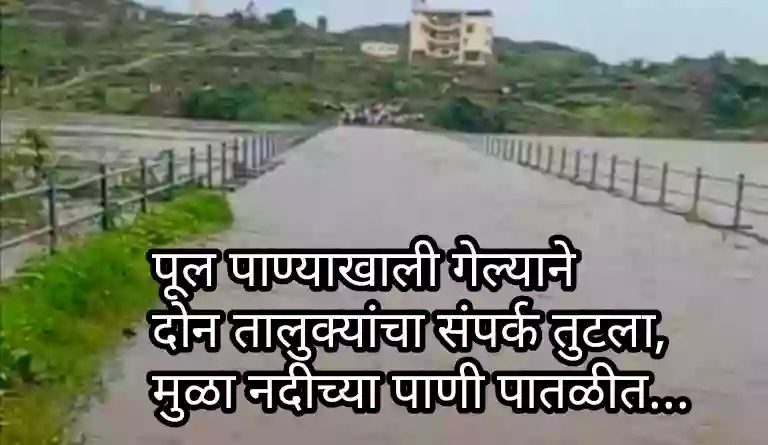 मुळा नदीच्या पाणी पातळीमध्ये मोठी वाढ होत असून मुळा नदीला आलेल्या पुरामुळे संगमनेर व पारनेर तालुक्यांना जोडणारा साकुर नजीकचा मांडवे पूल पाण्याखाली गेल्याने या दोन्ही तालुक्यांचा संपर्क तुटला आहे.