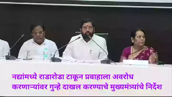 आगामी काळात पूर परिस्थिती उद्भवू नये यासाठी नद्यांची प्रवाह क्षमता वाढविण्यासाठी विविध उपाय योजना करण्यासह नद्यांमध्ये राडारोडा टाकून प्रवाहाला अवरोध करणाऱ्यांवर गुन्हे दाखल करा. पूरबाधितांच्या कायमस्वरूपी पुनर्वसनासाठी इमारतीच्या समूह विकासाचे (क्लस्टर) प्रस्ताव सादर करण्यासह झोपडपट्टी पुनर्वसन योजना गतीने राबविण्याचे निर्देश मुख्यमंत्री एकनाथ शिंदे यांनी दिले आहे.