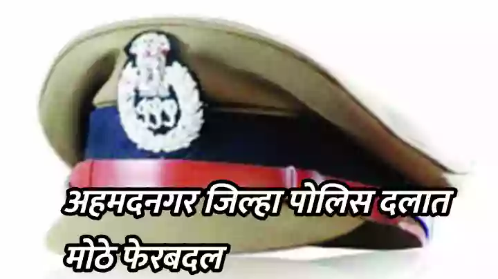 विधानसभा निवडणुकीच्या पार्श्वभूमीवर अहमदनगर जिल्हा पोलीस दलात मोठ्या प्रमाणात बदल करण्यात आले आहे. सोळा पोलीस निरीक्षकांसह अकरा सहाय्यक पोलीस निरीक्षक आणि दहा पोलीस उपनिरीक्षकांच्या जिल्हा अंतर्गत बदल्या करण्यात आल्या आहे. जिल्हा पोलीस अधीक्षक राकेश ओला यांनी सोमवारी संध्याकाळी बदल्यांचे हे आदेश काढले.
