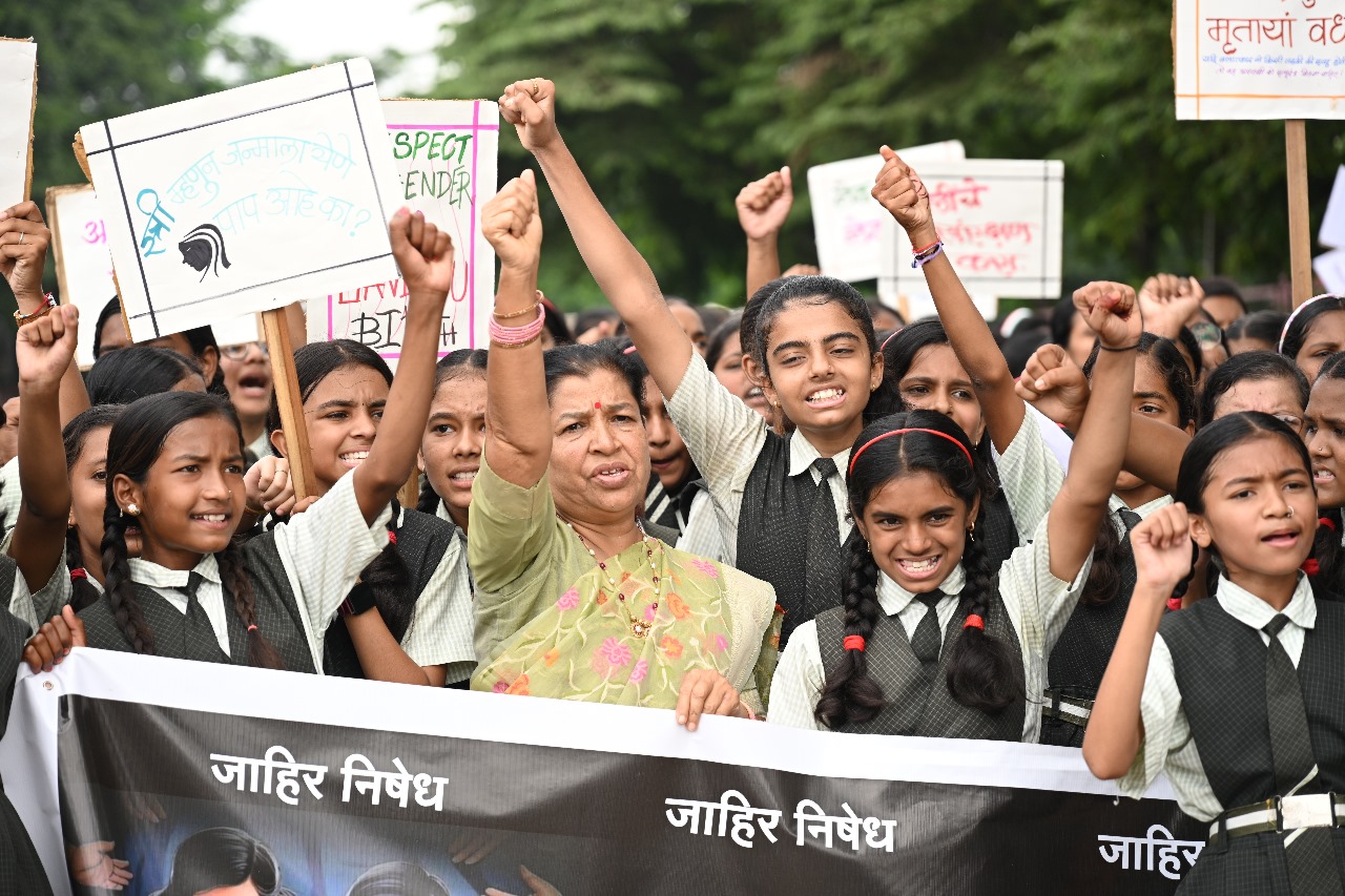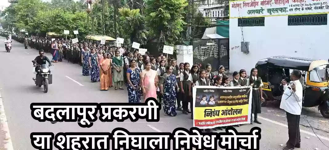 संगमनेर – बदलापूर येथील शाळेत अल्पवयीन मुलीवर झालेल्या घृणास्पद लैंगिक अत्याचाराच्या निषेधार्थ संगमनेरमध्ये हजारो विद्यार्थिनी व महिलांनी रस्त्यावर उतरून तीव्र निषेध करत या आरोपींना फाशी देण्याची आग्रही मागणी केली. तर अशा नराधम आरोपींना चौकामध्ये जिवंत जाळा, अशी मागणी महिला नेत्या दुर्गाताई तांबे यांनी केली.