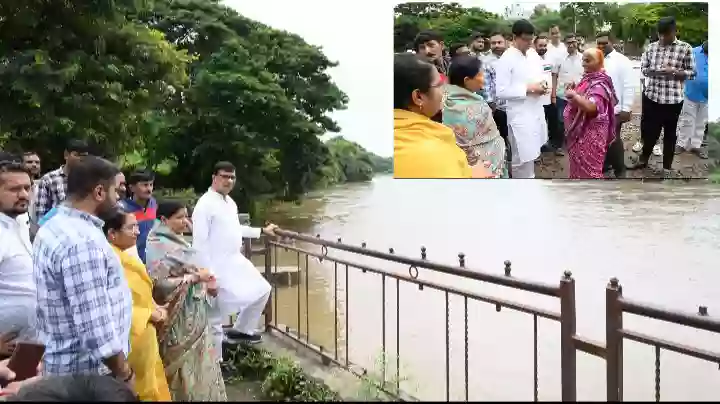 भंडारदरा, निळवंडे धरणाच्या पाणलोट क्षेत्रात पावसाची संततधार सुरू आहे. दोन्ही धरणात मोठ्या प्रमाणात पाण्याची आवक सुरू असल्याने नदीपात्रात धरणातून मोठ्या प्रमाणात पाणी सोडण्यात आले आहे. यामुळे प्रवरेला पूर आला आहे. तर भोजापुर धरण देखील भरल्याने म्हाळुंगी नदीपात्रात मोठ्या प्रमाणात पाणी आले आहे. आढळेलादेखील पाण्याची आवक सुरू आहे. त्यामुळे रविवारी दुपारी थोरात आणि तांबे यांनी एकत्रितपणे प्रवरा आणि म्हाळुंगी नदीकाठी पाहणी करत या परिसरात असलेल्या साईनगर, नाईकवाडपुरा भागातील रहिवाशांची संवाद साधला.
