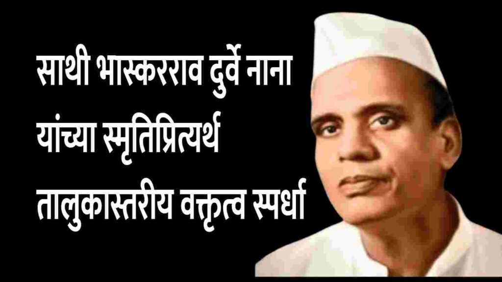 संगमनेर – साने गुरुजी शतकोत्तर रौप्यमहोत्सवी जयंती वर्षानिमित्त संगमनेरच्या साथी भास्करराव दुर्वे स्मारक प्रतिष्ठानच्यावतीने साथी भास्करराव दुर्वे नाना यांच्या स्मृतिप्रित्यर्थ तालुकास्तरीय वक्तृत्व स्पर्धेचे आयोजन करण्यात आले असल्याची माहिती प्रतिष्ठानचे कार्यकारी विश्वस्त राजाभाऊ आवसक यांनी दिली आहे.