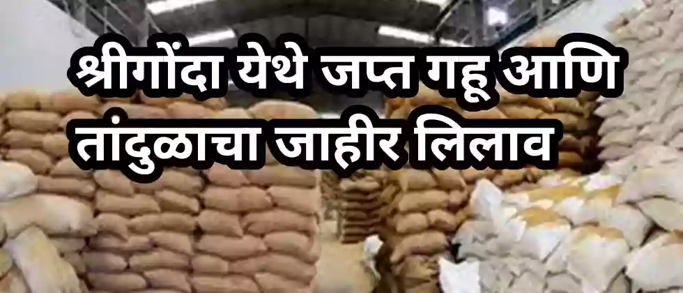 अहमदनगर – श्रीगोंदा तहसील कार्यालयाने जप्त केलेल्या गहू आणि तांदुळाचा जाहीर लिलाव शासकीय धान्य गोदाम पेडगाव रोड, श्रीगोंदा येथे ११ सप्टेंबर रोजी सकाळी ११ ते दुपारी २ या वेळेत करण्यात येणार आहे.