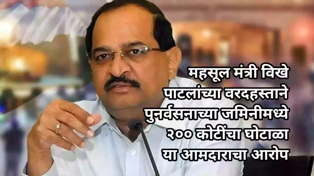 पुणे : महसूल मंत्री राधाकृष्ण विखे पाटील यांच्या वरदहस्ताने पुणे जिल्ह्यातील कासारसाई धरण प्रकल्पग्रस्तांच्या पुनर्वसनासाठी असलेली मावळ तालुक्यातील २०० कोटी रुपयांची ३१ एकर जमीन वाटप आदेश होण्यापूर्वीच नोंदणीकृत साठेखत दस्तऐवजाद्वारे हस्तांतरित करण्यात आली आहे, असा आरोप काँग्रेसचे आमदार रवींद्र धंगेकर यांनी शुक्रवारी केला. दरम्यान या संदर्भात मंत्री विखे पाटील यांची प्रतिक्रिया अद्याप समोर आलेली नाही.