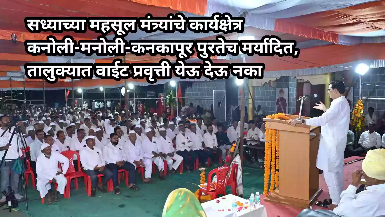 सत्ता सामान्य माणसाच्या विकासासाठी असते मात्र याचा विसर पडलेली, सत्ता आणि पैशाच्या जीवावर राजकारण करणारी काही मंडळी सध्या आपल्या तालुक्यात फिरत आहे. मंत्रीपदावर असलेल्या व्यक्तीने राज्यभर फिरून काम करण्याऐवजी सध्याच्या महसूल मंत्र्यांचे कार्यक्षेत्र कनोली-मनोली-कनकापूर पुरतेच मर्यादित राहिले आहे, अशी टीका मंत्री विखे यांच्यावर करत संगमनेर तालुक्यात वाईट प्रवृत्ती येऊ देऊ नका, असे आवाहन माजी मंत्री आमदार बाळासाहेब थोरात यांनी केले.