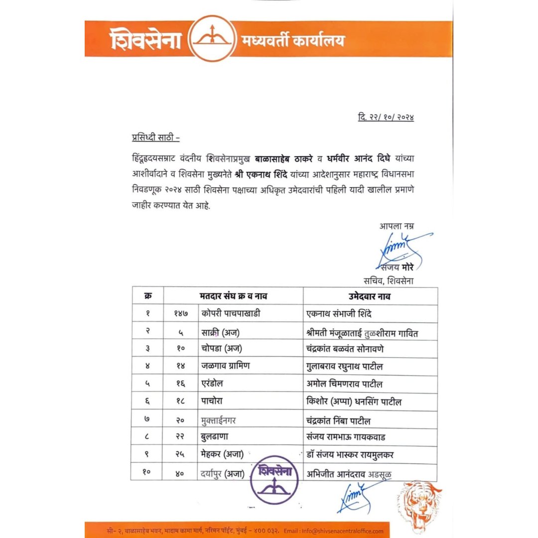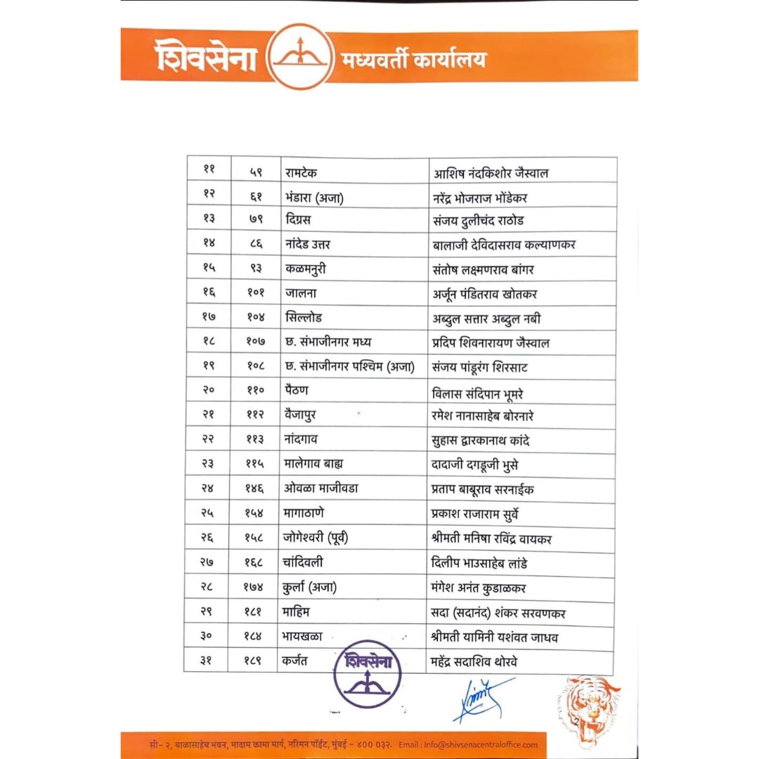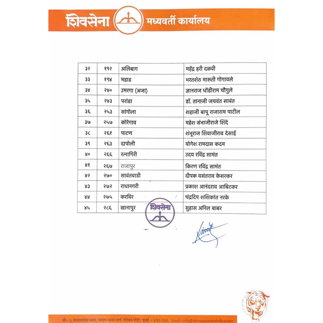 बघा शिवसेनेच्या उमेदवारांची यादी…