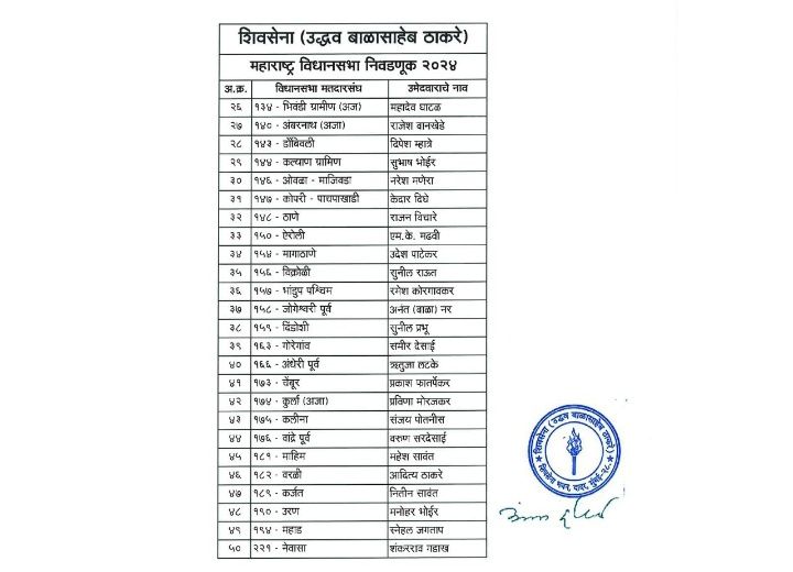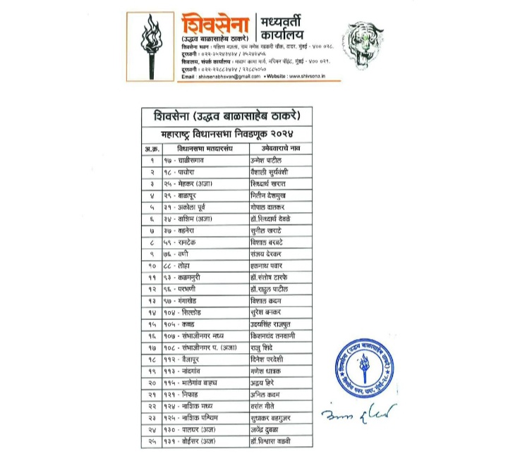 शिवसेनेने जाहीर केलेले उमेदवार खालील प्रमाणे… बघा यादी झूम करून