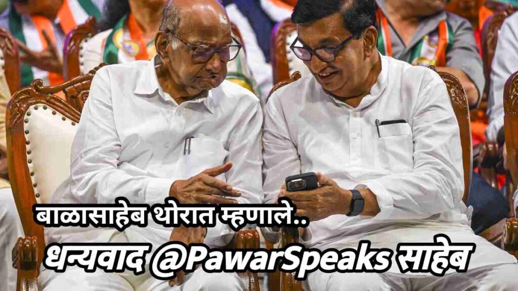 राज्याचे माजी मंत्री आणि काँग्रेसचे ज्येष्ठ नेते आमदार बाळासाहेब थोरात यांनी राज्याचे माजी मुख्यमंत्री राष्ट्रवादी काँग्रेसचे संस्थापक शरद पवार यांना ‘धन्यवाद साहेब’ म्हटले आहे.