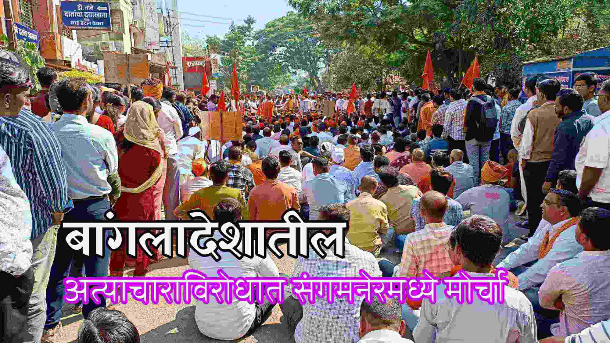 बांगलादेशात हिंदूंवर मोठ्या प्रमाणावर अन्याय, अत्याचार होत आहे. हिंदूंची मंदिरे, घरे जाळण्यात, तोडण्यात येत आहे. हिंदू साधूंना तुरुंगात टाकले जात आहे. याच्या निषेधार्थ संगमनेरमध्ये मंगळवारी सकाळी सकाळ हिंदू समाजाच्यावतीने मोर्चा काढण्यात आला.