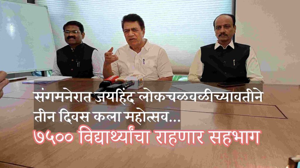 संगमनेर – शालेय विद्यार्थ्यांना शालेय जीवनातच व्यवसाय पूर्व कौशल्य मिळावीत, आपली कार्य संस्कृती आणि आधुनिक व्यवसाय याविषयी माहिती तसेच स्वतःचे करिअर निवडण्यासाठी प्रेरणा मिळावी यासाठी निरोगी व सुदृढ समाज निर्मितीसाठी कार्यरत असलेल्या जय हिंद लोक चळवळीच्या माध्यमातून संगमनेरमध्ये २१ ते २३ डिसेंबर दरम्यान भव्य कला महोत्सवाचे आयोजन करण्यात आले आहे. कला महोत्सवाच्या दरम्यान ७२०० विद्यार्थ्यांना तज्ज्ञांच्या माध्यमातून व्यवसाय पूर्व कौशल्य शिकविली जाणार आहे.