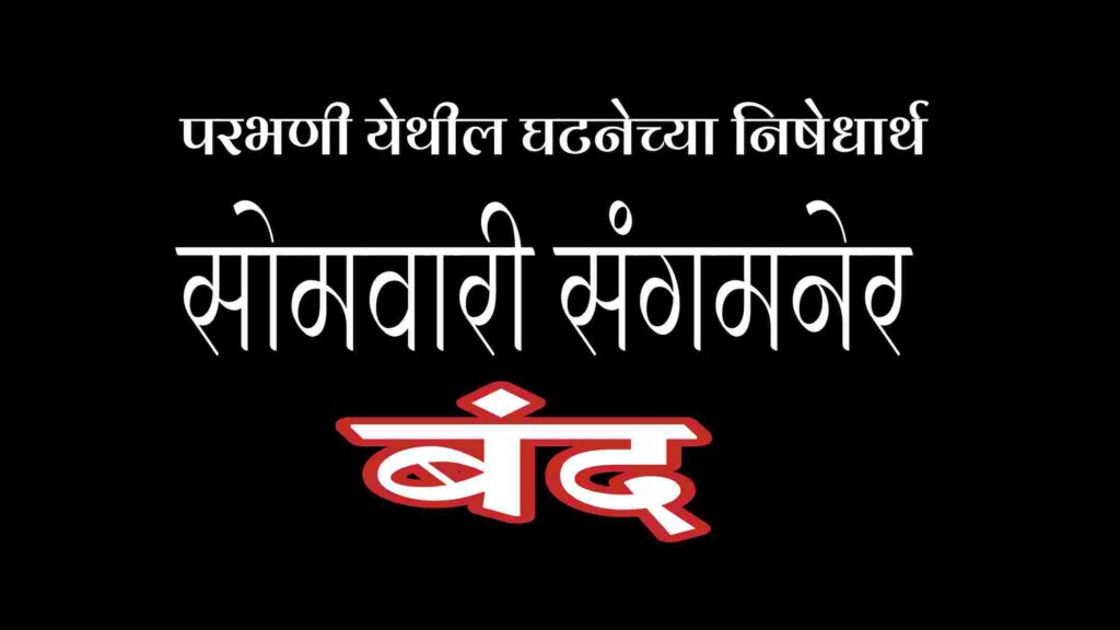 संगमनेर – परभणी येथील घटनेचे पडसाद राज्यभरात उमटण्याची चिन्हे निर्माण झाली आहे. पोलिसांनी बेकायदेशीर कोंबिंग ऑपरेशन करत अनेक दलित कार्यकर्त्यांवर खोटे गुन्हे दाखल करून जेलमध्ये टाकले आहे. त्यातच वकिलीचे शिक्षण घेणाऱ्या तरुणाला जामीन मंजूर होऊन देखील त्याचा मृत्यू कोठडीत झाल्याने पोलिसांनी त्याचा खून केल्याचा दलित समाजातील कार्यकर्त्यांचा समज झाला असल्याने सरसेनानी आनंदराज आंबेडकर यांनी सोमवारी (१६ डिसेंबर) महाराष्ट्र बंदची हाक दिली असून संगमनेर बंदचेही आवाहन करण्यात आले आहे.