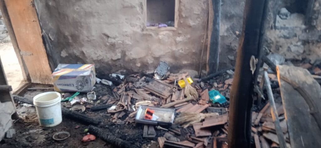 आगीत जुने यांच्या घरातील चार पोते सोयाबीन, बाजरीचे पोते, कपडे याच्यासह संसार उपयोगी सर्व वस्तू जळून खाक झाल्या. मोलमजुरी करून मिळालेले पाच ते सात हजार रुपयांची रोख रक्कम देखील आगीत जळून गेली. घुले यांचा संपूर्ण संसार आगीच्या भक्षस्थानी पडला.