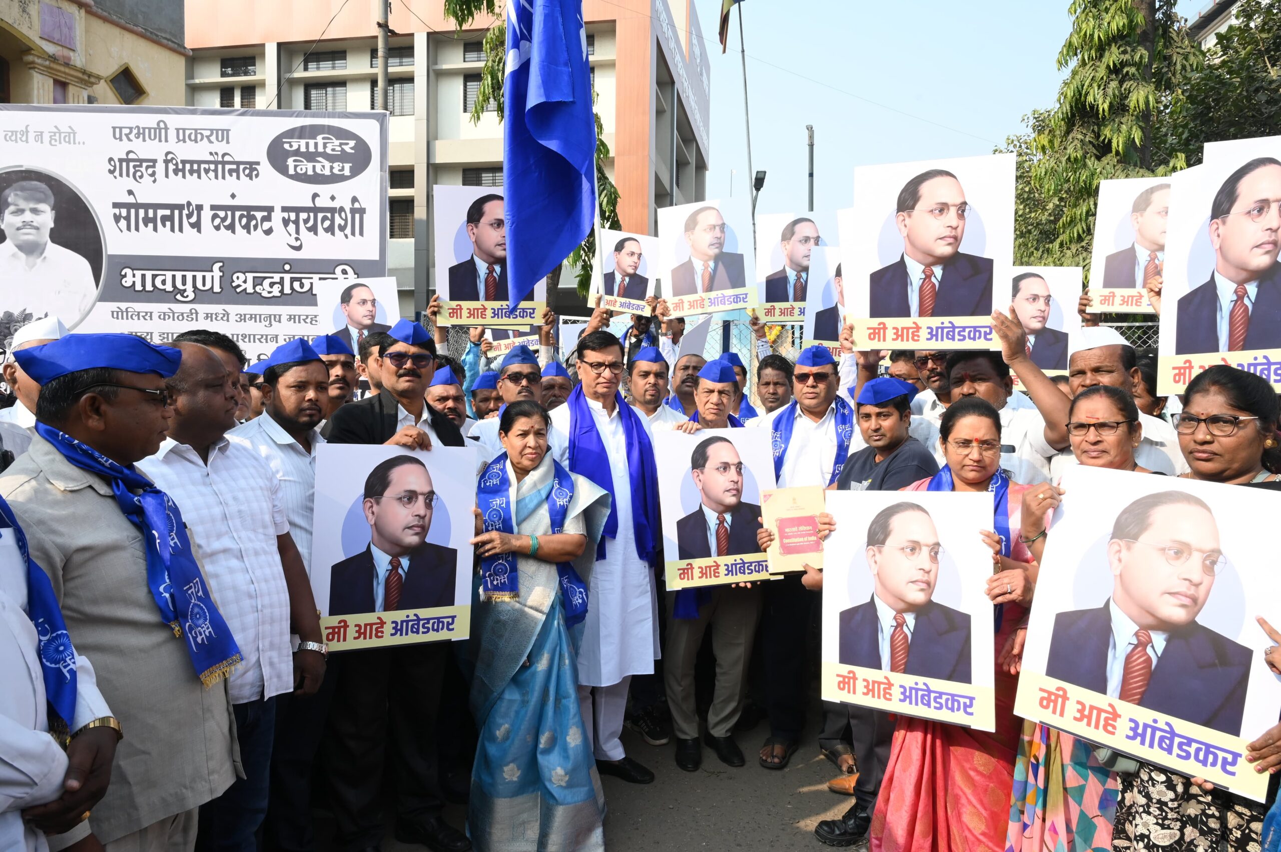 यासाठी झाले आंदोलन – महामानव भारतरत्न डॉ. बाबासाहेब आंबेडकर यांच्यावर केलेल्या वक्तव्याचा निषेध तसेच आंबेडकर चळवळीतील कार्यकर्ता सोमनाथ सूर्यवंशी व बीड जिल्ह्यातील सरपंच संतोष देशमुख यांच्या अमानुषपणे झालेल्या मृत्यूच्या निषेधार्थ महाविकासह आघाडीच्यावतीने आयोजित निषेध आंदोलनात थोरात बोलत होते
