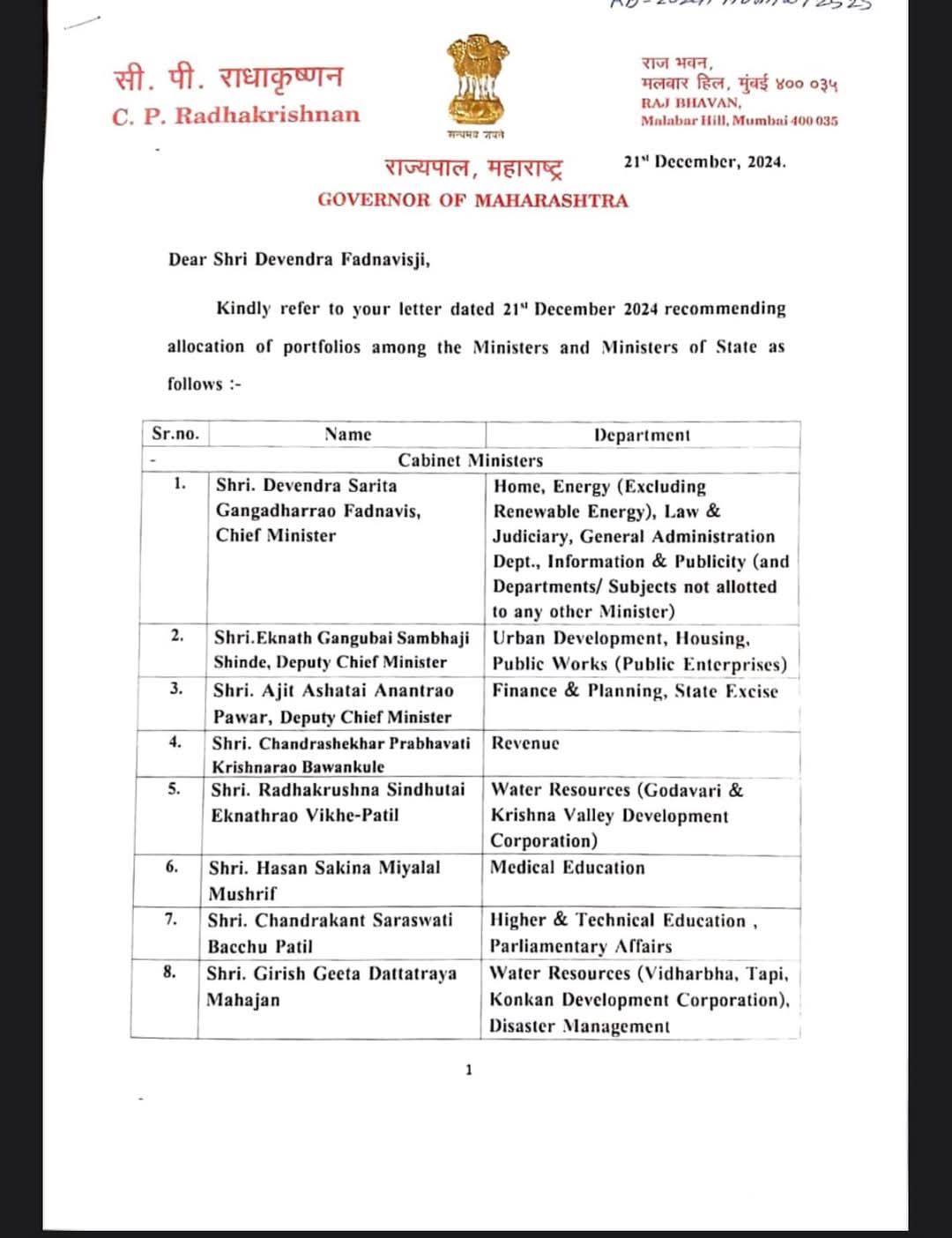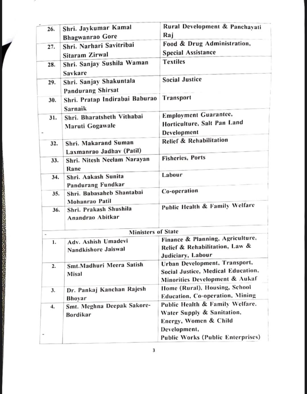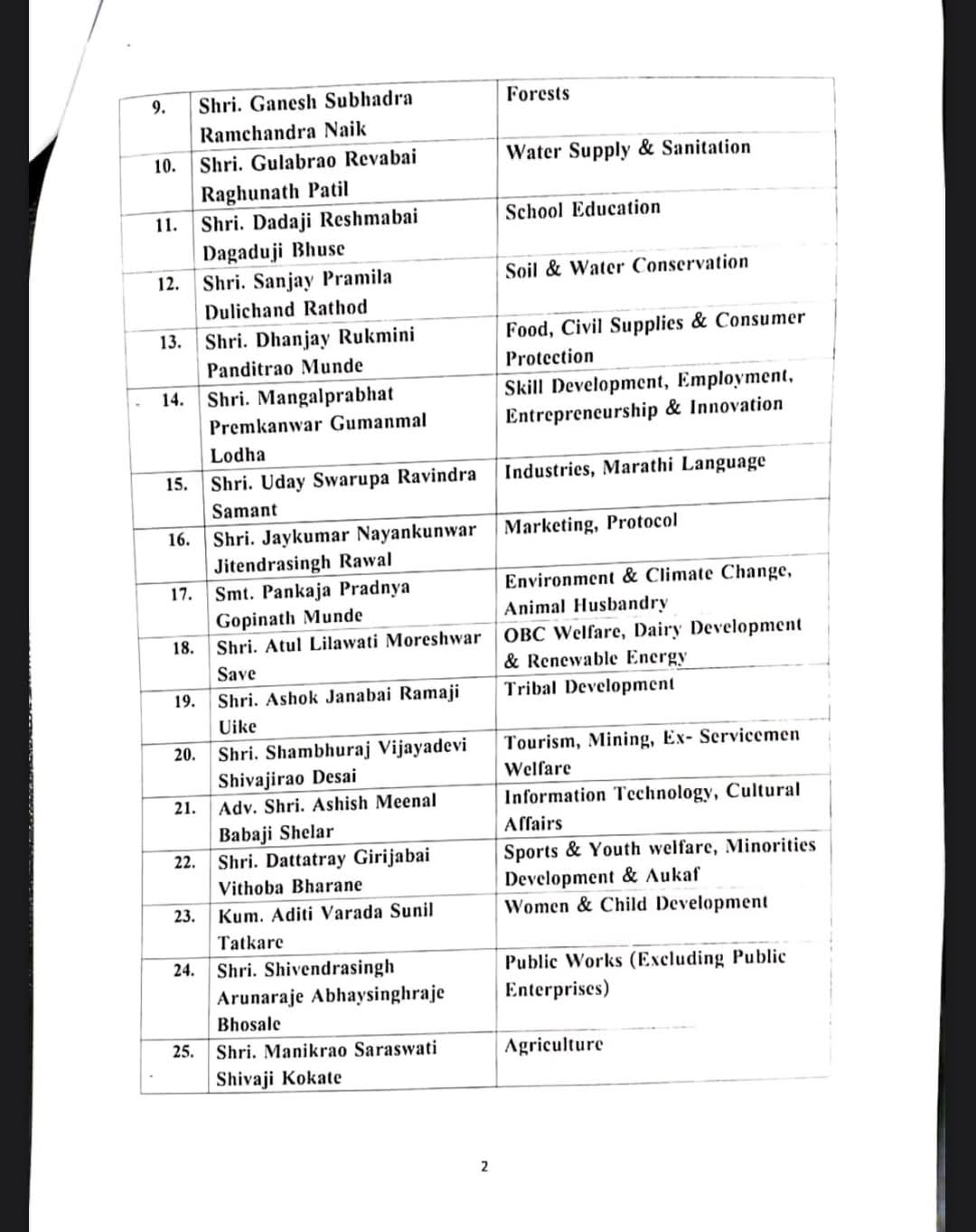 बघा खाते वाटपात कोणाला मिळाले कोणते खाते…