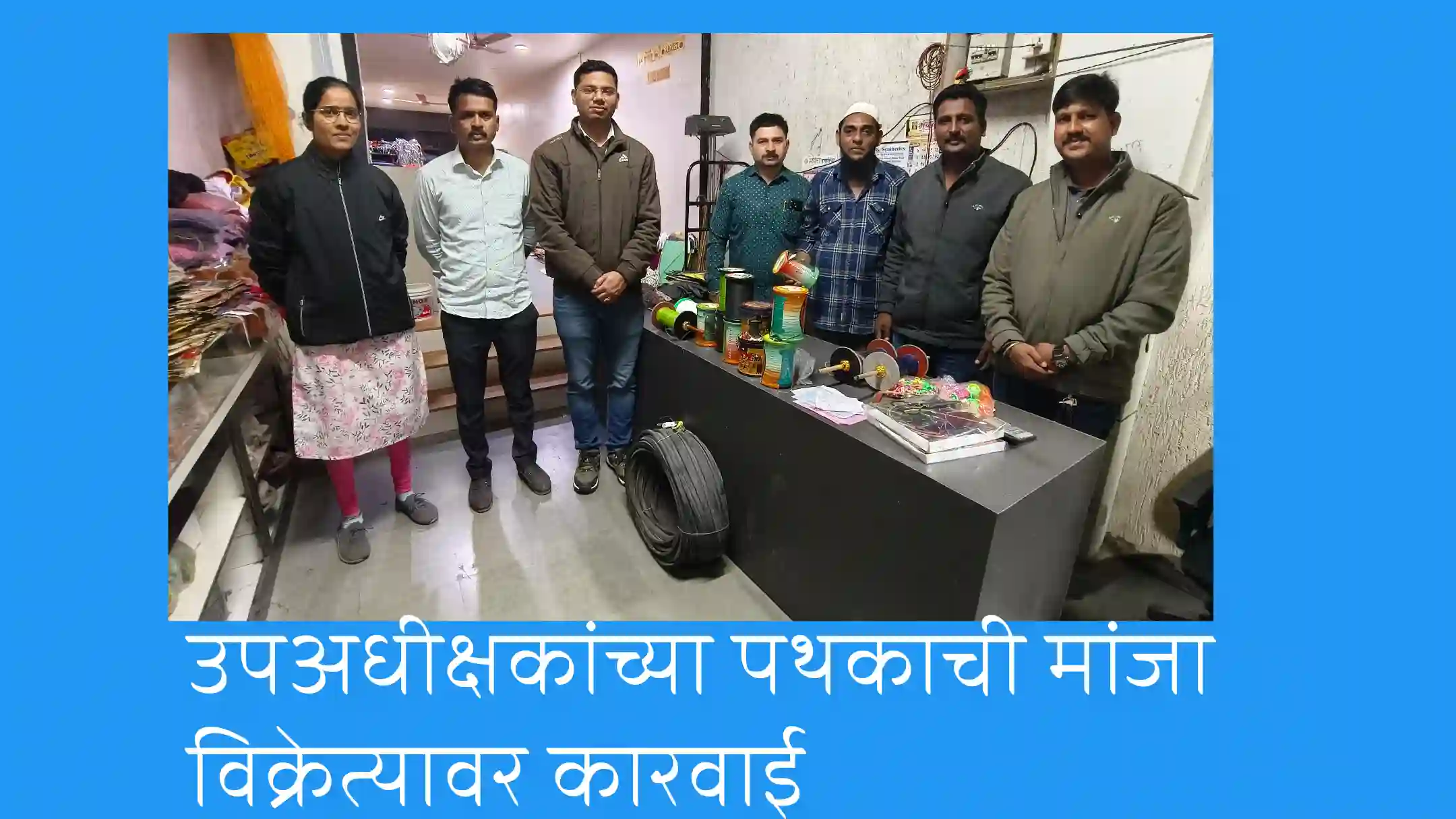 पथकाने बाजारपेठेतील गृह वस्तू भंडाराजवळील तेली खुंट परिसरात मिळालेल्या माहितीच्या आधारे छापा टाकला असता तेथे जहीर रऊप अत्तार हा नायलॉन मांजा विक्री करत असल्याचे पथकाला आढळून आला. पोलिसांनी त्याच्या दुकानाची झडती घेतली असता तेथे त्यांना नायलॉन मांजाचे ११रिल आढळून आले.