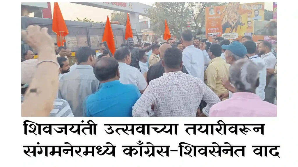 शिवजयंती उत्सव आठवडाभरावर येऊन ठेपला असताना या उत्सवाच्या तयारीवरून संगमनेरात मोठे वादंग निर्माण झाल्याचे दिसत आहे. काँग्रेस आणि शिवसेना कार्यकर्ते, पदाधिकाऱ्यांमध्ये यावेळी वाद निर्माण झाला. दरम्यान या प्रकरणी रात्री उशिरापर्यंत पोलिस यंत्रणेकडून कोणतीही ठोस भूमिका घेण्यात आलेली नव्हती.