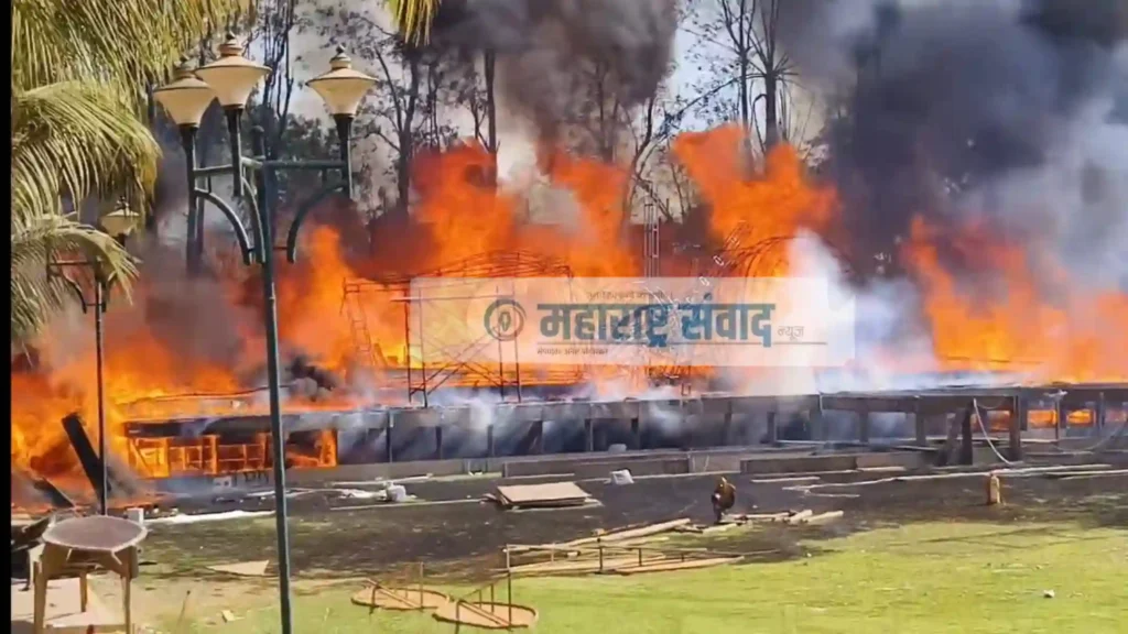 दरम्यान आगीच्या ठिकाणी मोठ्या प्रमाणात थर्माकोल आढळून आले असून या व्यासपीठासाठी थर्माकोलचा वापर करण्यात आल्याचे दिसून येत होते. बंदी असताना देखील मोठ्या प्रमाणात थर्माकोलचा वापर होत असल्याने संबंधितांवर काय कारवाई केली जाते याकडे लक्ष लागले आहे.