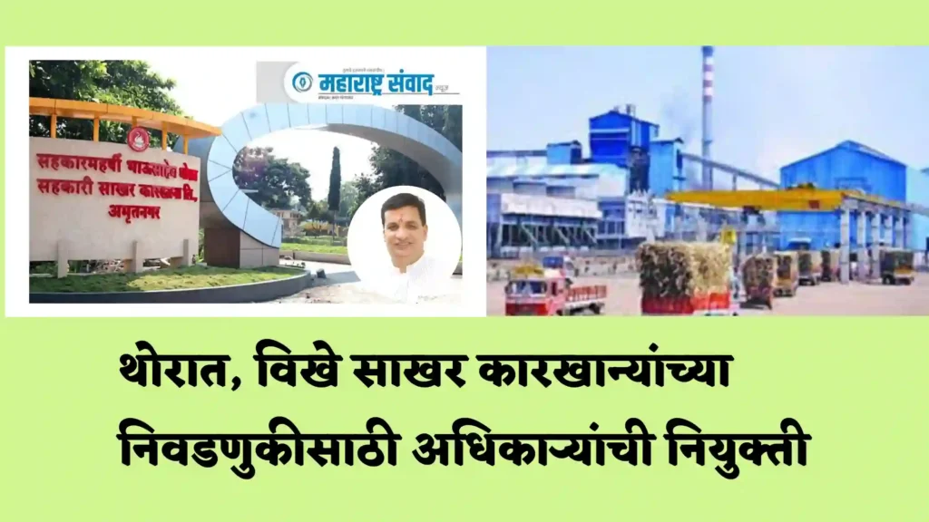 येत्या काही दिवसात संगमनेर येथील सहकार महर्षी भाऊसाहेब थोरात सहकारी साखर कारखाना आणि प्रवरानगर येथील पद्मश्री डॉ. विठ्ठलराव विखे पाटील सहकारी साखर कारखाना यांच्या निवडणुका होणार आहेत. या निवडणुकांसाठी राज्य सहकारी निवडणूक प्राधिकरणाने निवडणूक निर्णय अधिकाऱ्यांची नियुक्ती केली आहे.