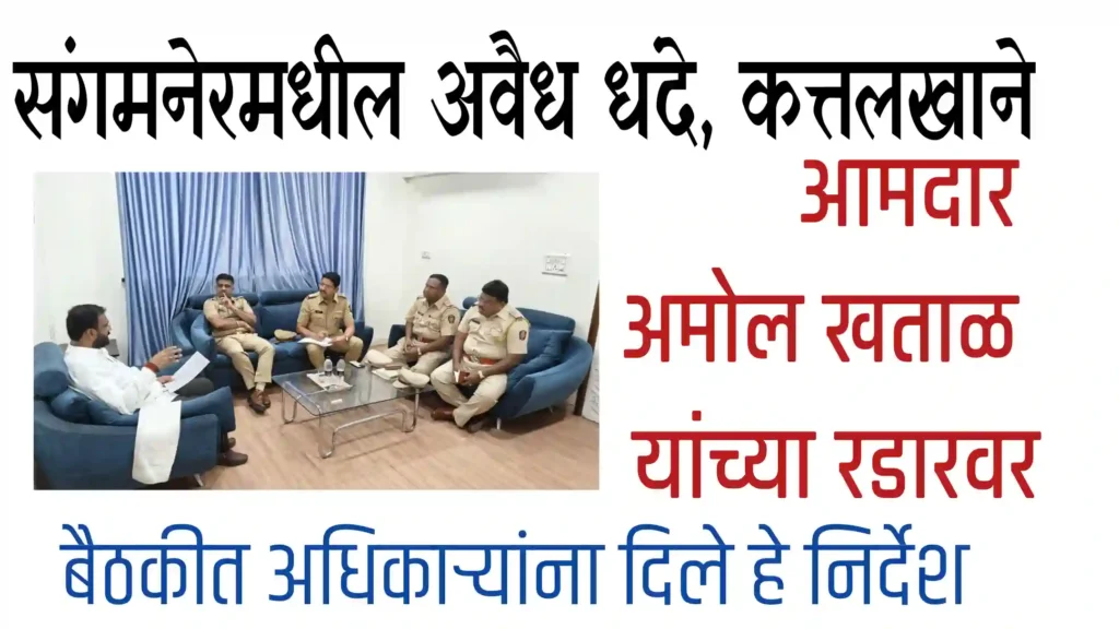 संगमनेर शहर आणि तालुक्यात बोकाळलेले अवैध धंदे आणि अनधिकृत कत्तलखाने आता आमदार अमोल खताळ यांच्या रडारवर आले आहेत. या गंभीर प्रकारांमुळे कायदा व सुव्यवस्थेचा प्रश्न निर्माण होत असून, या विघ्नसंतोषी प्रवृत्तींवर तातडीने अंकुश लावण्याचे आणि शहरातील सर्व अवैध धंदे कायमस्वरूपी बंद करून अनधिकृत कत्तलखाने उध्वस्त करण्याचे सक्त निर्देश आमदार खताळ यांनी पोलीस प्रशासनाला दिले आहेत.