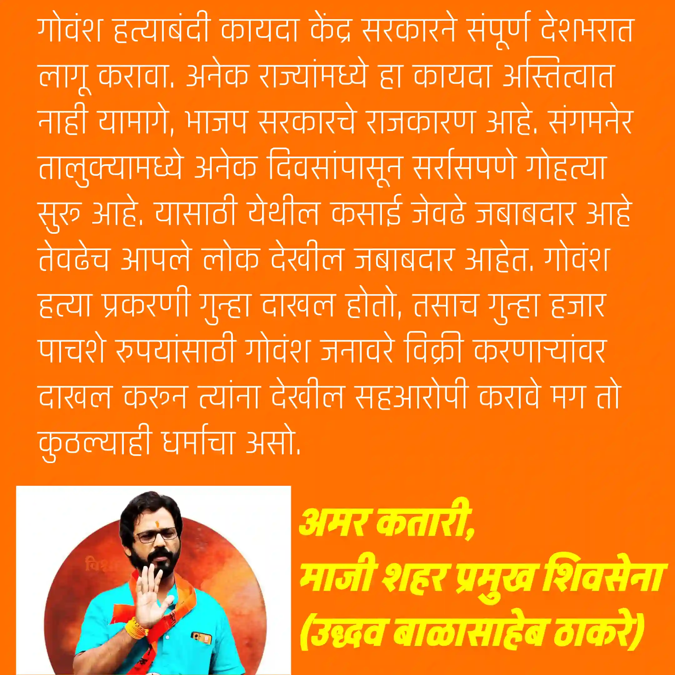पोलिसांच्या भूमिकेवर प्रश्नचिन्ह आणि आरोपींना अभय?… संगमनेर परिसरात गोवंश हत्यांचे प्रमाण लक्षणीय वाढले आहे. येथे मोठ्या प्रमाणात बेकायदेशीर कत्तलखाने असून, पोलिसांकडून अनेकदा कारवाई होऊनही हे प्रकार थांबताना दिसत नाहीत. आतापर्यंत या संदर्भात दाखल झालेल्या गुन्ह्यांची संख्या काही शेकड्याच्या पटीत आहे. मात्र, पोलीस प्रशासनाच्या कारवाया सातत्याने संशयाच्या घेऱ्यात आहेत. अनेक गुन्ह्यांमध्ये आरोपी फरार दाखवले जातात, तर वारंवार तेच-तेच आरोपी निष्पन्न होऊनही त्यांच्यावर कठोर कारवाई होताना दिसत नाही. त्यामुळे गोवंश हत्या करणारे सर्रासपणे आपला व्यवसाय करत असून, त्यांना कायद्याची कोणतीही भीती नसल्याचे चित्र आहे.