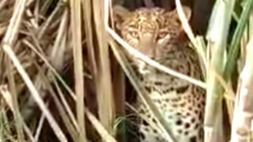 जवळच असलेल्या उसाच्या शेतात एक बिबट्या बगळ्यांची शिकार करण्याच्या तयारीत दबा धरून बसला होता.