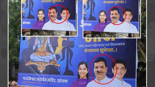 वडगाव पान येथील टोलनाक्याजवळ असलेल्या महादेव मंदिरापाशी श्रावण मासानिमित्त बाळासाहेब थोरात, आमदार सत्यजित तांबे आणि डॉ. जयश्री थोरात यांच्या शुभेच्छांचा फ्लेक्स लावण्यात आला होता. मात्र, श्रावणाच्या दुसऱ्याच दिवशी काही समाजकंटकांनी या फ्लेक्सची छेडछाड केल्याचा प्रकार समोर आला आहे. ही बातमी वाऱ्यासारखी पसरताच संपूर्ण तालुक्यात संतापाचे वातावरण निर्माण झाले. अनेक नागरिकांनी या विकृत कृत्याचा तीव्र निषेध नोंदवला.