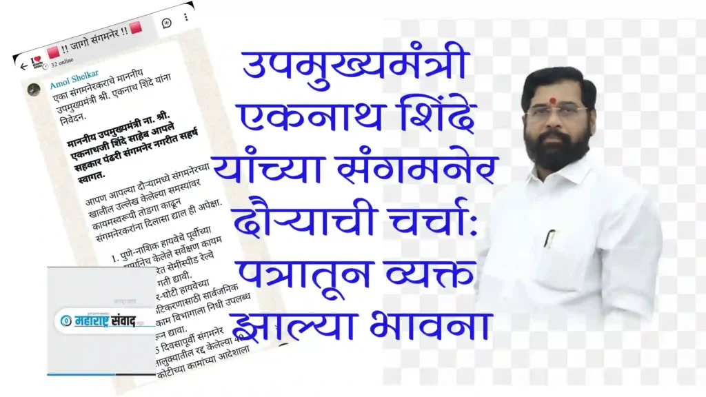 संगमनेर, प्रतिनिधी: राज्याचे उपमुख्यमंत्री आणि नगरविकास मंत्री एकनाथ शिंदे यांच्या संगमनेर दौऱ्यामुळे येथील राजकीय वातावरण तापले आहे. मात्र, या दौऱ्याची खरी उत्सुकता केवळ राजकीय भाषणांपुरती मर्यादित नसून, एका स्थानिक नागरिकाने सोशल मीडियावर व्हायरल केलेल्या पत्राने ती आणखी वाढवली आहे. या पत्रात, सामान्य नागरिकाने एकनाथ शिंदे यांच्याकडे थेट संगमनेरच्या विकासासाठी काही महत्त्वाच्या मागण्या केल्या आहेत. त्यामुळे, आता उपमुख्यमंत्री या मागण्यांवर काय भूमिका घेतात, याकडे सर्वांचे लक्ष लागले आहे. हा दौरा राजकीय सभांपेक्षा स्थानिक जनतेच्या अपेक्षांशी अधिक जोडला गेला आहे, असे दिसते.