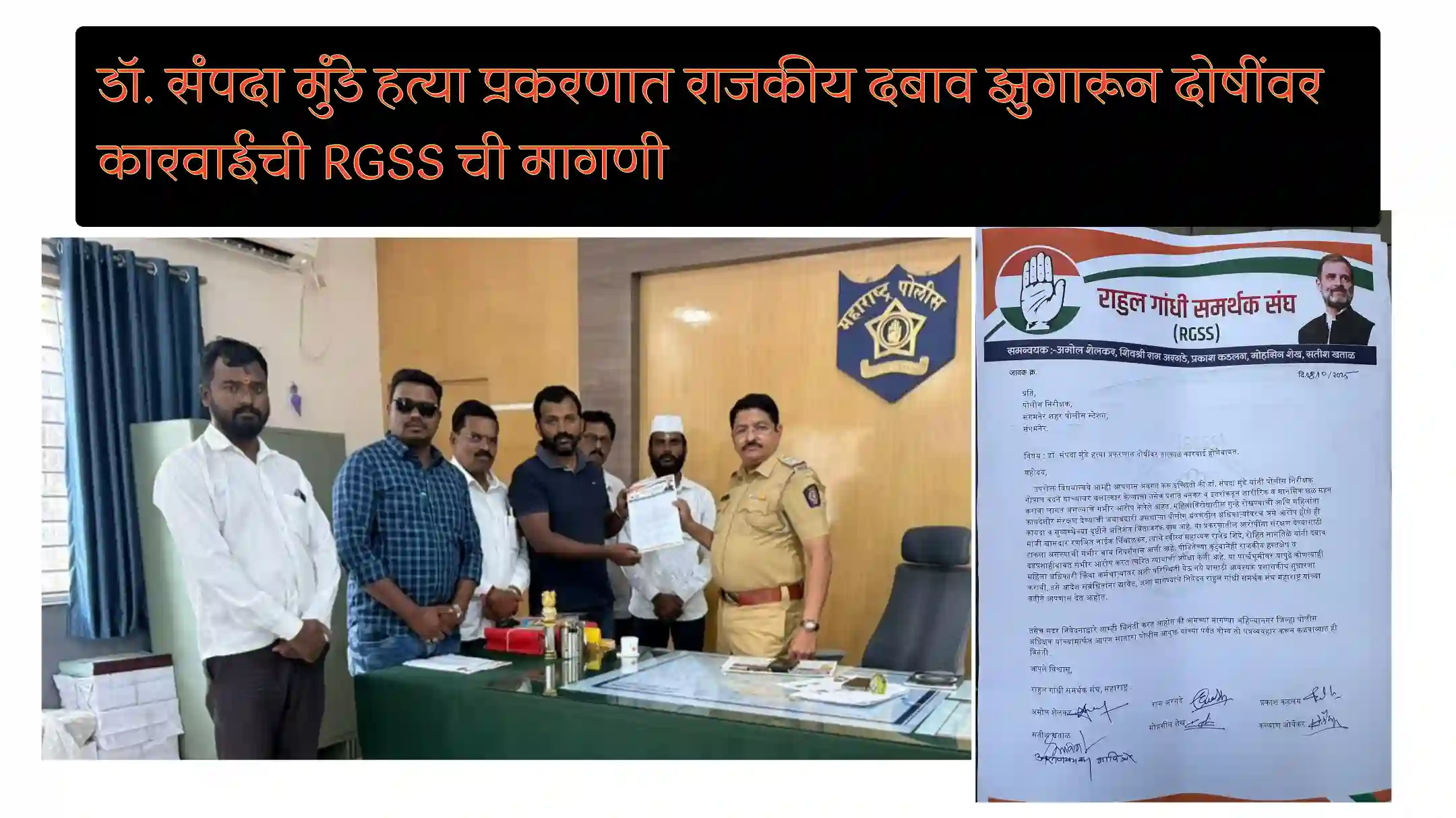 ‘राहुल गांधी समर्थक संघ’ (RGSS) आक्रमक; डॉ. संपदा मुंडे हत्या प्रकरणात राजकीय दबाव झुगारून दोषींवर कारवाईची मागणी