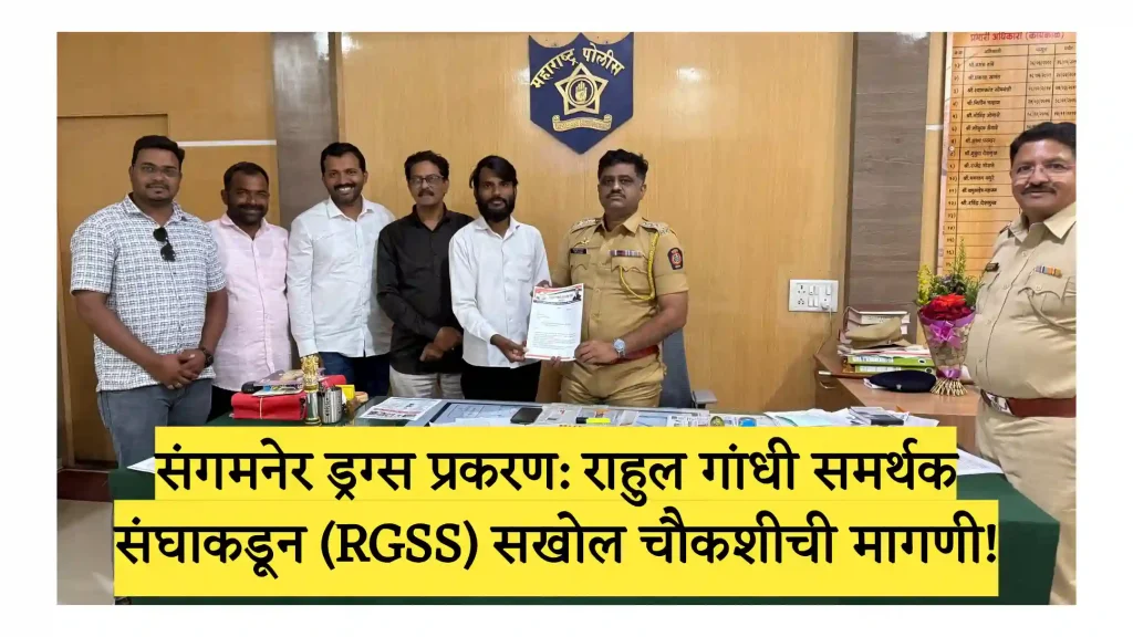 संगमनेर – संगमनेर शहरात उघडकीस आलेल्या ड्रग्स इंजेक्शन विक्री प्रकरणासंदर्भात राहुल गांधी समर्थक संघ महाराष्ट्र (RGSS) या संघटनेने कठोर भूमिका घेत पोलीस उपाधीक्षक डॉ. कुणाल सोनवणे व संगमनेर शहर पोलीस निरीक्षक रवींद्र सोनवणे यांना एक निवेदन देत या देशविघातक कृत्याचे समूळ उच्चाटन करण्यासाठी आणि या रॅकेटच्या मुळापर्यंत पोहोचण्यासाठी त्यांनी सध्या सुरू असलेल्या तपासात आणखी सखोल चौकशी करण्याची मागणी केली आहे.