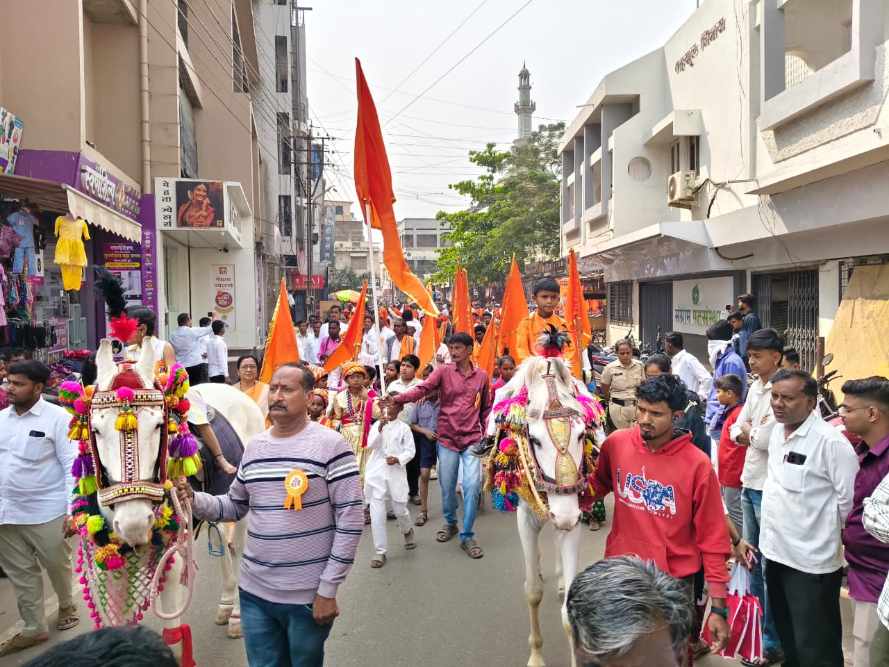 संगमनेर नगरपरिषद, संभाजी ब्रिगेड, मराठा महासंघ आणि विविध सामाजिक संघटनांच्या वतीने निघालेली ही मिरवणूक बाजारपेठ, सय्यद बाबा चौक, तेली खुंट आणि मेनरोड मार्गे काढण्यात आली. मिरवणुकीत सर्व नगरसेविकांनी पारंपारिक फेटे परिधान केले होते. अश्वारूढ बाल शिवाजी, मर्दानी खेळ आणि जागोजागी झालेली पुष्पवृष्टी व फटाक्यांची आतिषबाजी हे मिरवणुकीचे मुख्य आकर्षण ठरले. ‘हर हर महादेव’ आणि ‘छत्रपती शिवाजी महाराज की जय’ या घोषणांनी संपूर्ण संगमनेर नगरी दुमदुमून गेली होती.
