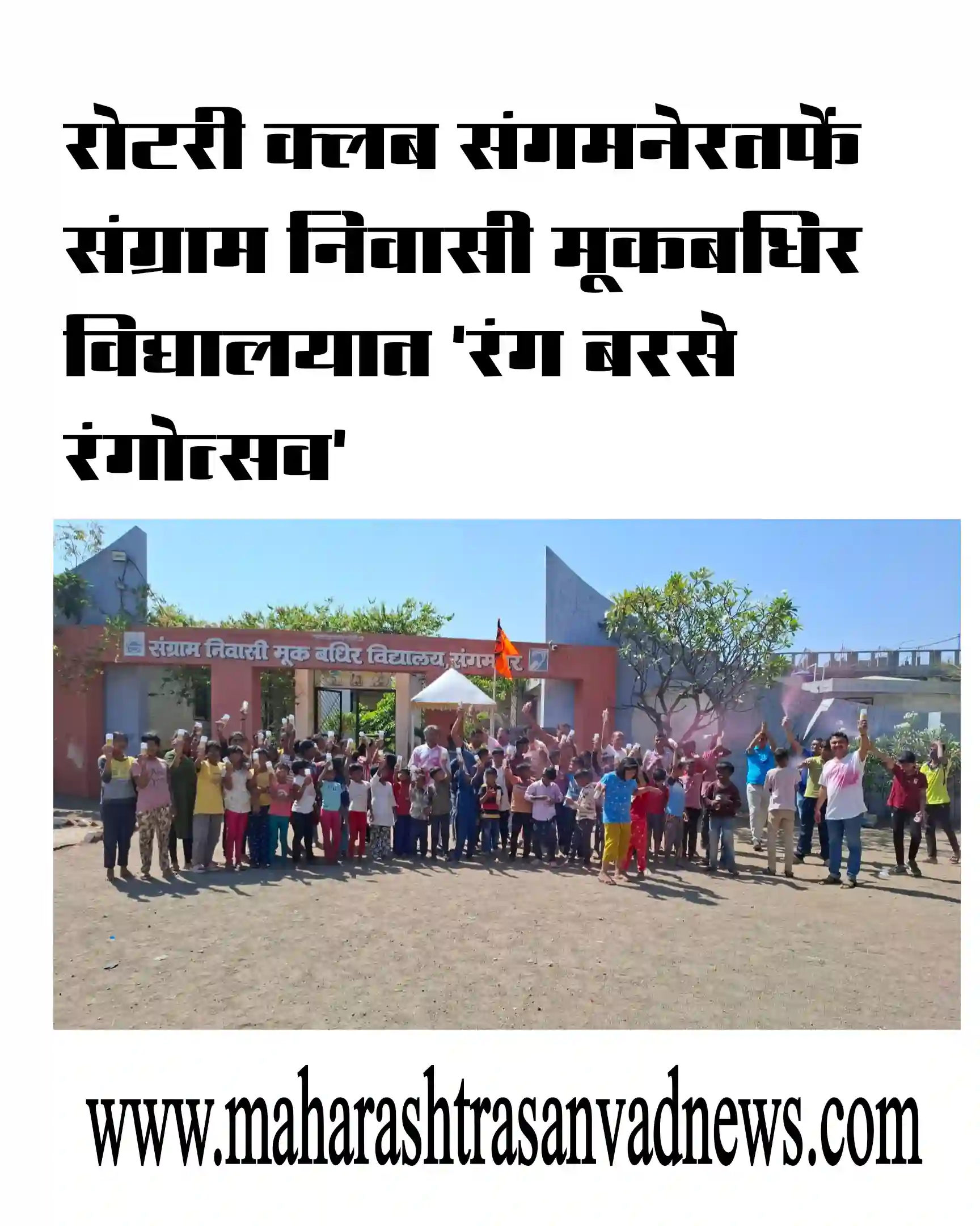 रोटरी क्लब संगमनेर आणि दीपक इंडस्ट्रीज यांच्या संयुक्त विद्यमाने संग्राम निवासी मूकबधिर विद्यालयात दिव्यांग विद्यार्थ्यांसोबत “रंग बरसे रंगोत्सव” मोठ्या उत्साहात साजरा करण्यात आला. या उपक्रमामुळे विद्यार्थ्यांमध्ये आनंदाचे आणि उत्साहाचे वातावरण निर्माण झाले.