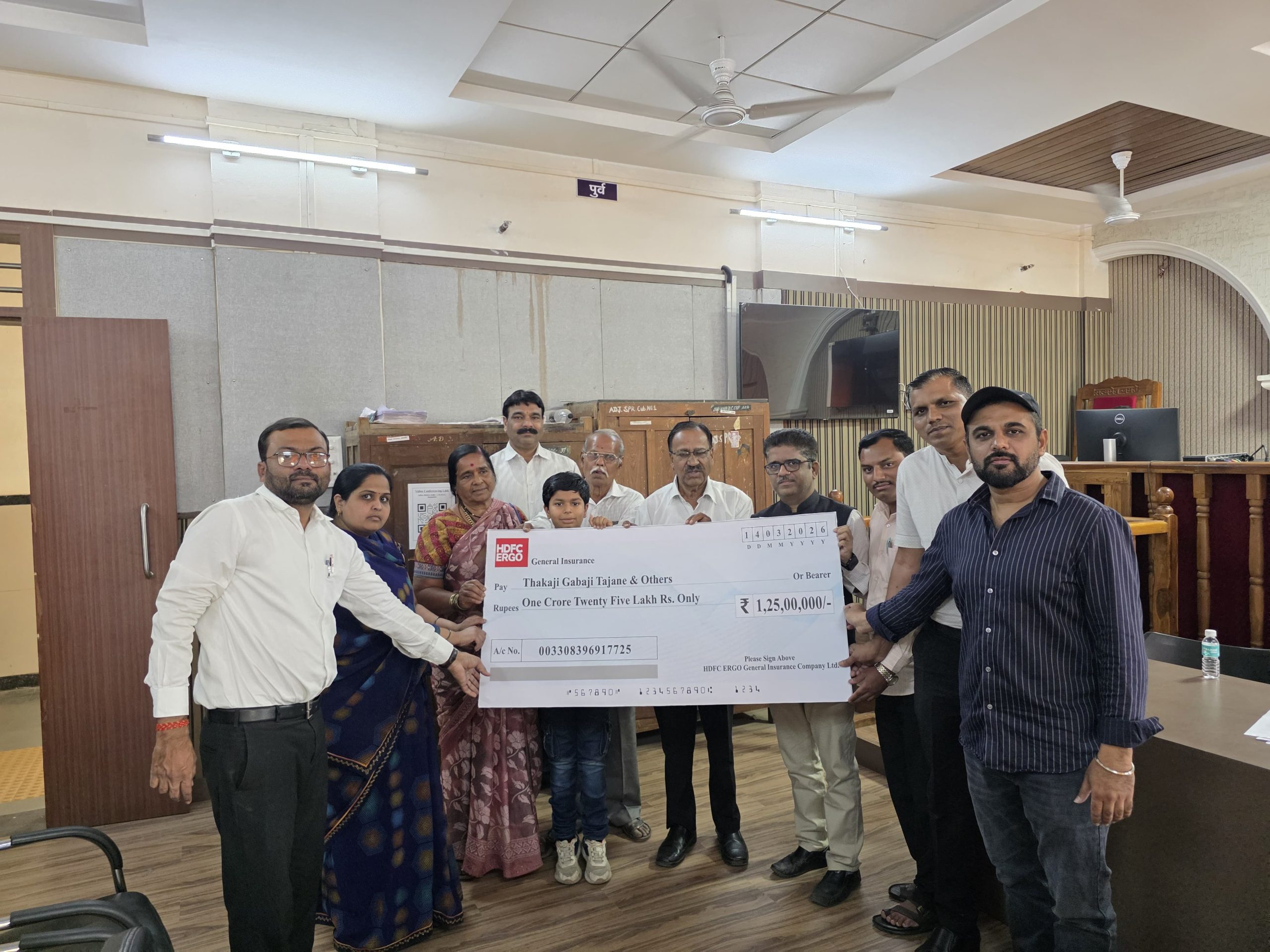 या प्रकरणाचा निकाल लावण्यासाठी ‘एचडीएफसी अर्गो’ जनरल इन्शुरन्स कंपनीचे प्रतिनिधी रवींद्र जाधव आणि कंपनीचे विधिज्ञ ॲड. एन. एम. जोशी यांनी सकारात्मक भूमिका घेतली. खटला वर्षानुवर्षे लांबवण्यापेक्षा पीडित कुटुंबाला वेळीच आर्थिक आधार देण्याच्या उदात्त हेतूने विमा कंपनीने सहकार्याचा हात पुढे केला.