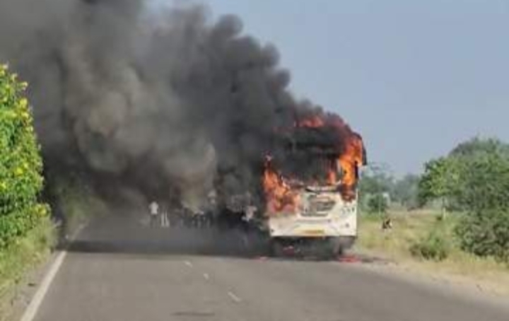 सुदैवाने बसमधील प्रवाशांना वेळीच खाली उतरवण्यात आल्याने सर्वजण बचावले आहेत. तर बस जळून खाक झाली आहे.