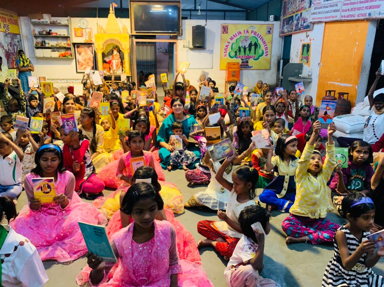 बालदिनानिमित्त साईआश्रया वाचनालय व मुलांना राष्ट्रमाता राजमाता जिजाऊ मांसाहेब, स्वातंत्र्यविर सावरकर, प.पु. गोवळकार गुरूजी, प.पु.डॅा. हेडगेवार, पंडित दिनदयाल उपाध्याय, डॅा.बाबासाहेब आंबेडकर या राष्ट्रीय विचारवंतांची आध्यात्मिक, सामाजिक अशी अनेक पुस्तके विद्यार्थ्यांना भेट स्वरूपात देण्यात आली. त्यानंतर सर्वांनी गणपती स्तोत्राचे पठण केले.
