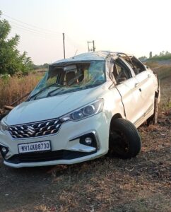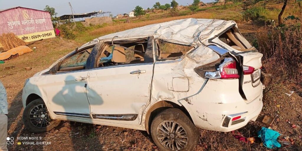 त्यावेळी कार चालक विनायक डेरे यांनी मुलीला वाचविण्यासाठी कारचा अचानक ब्रेक दाबला. कार भरधाव वेगात असल्याने ब्रेक दाबताच कार पाच ते सहा वेळा पलटी होऊन ५०० मीटरवर महामार्गाच्या खाली जाऊन थांबली. यात कारचे टायर फुटले असून मोठे नुकसान झाले आहे. कारमधील विजय डेरे यांचा मृत्यू झाला. तर वैष्णवी मेंगाळसह कारमधील वरील आठजण गंभीर जखमी झाले.