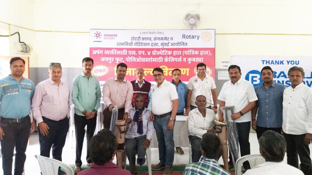 संगमनेर रोटरी क्लब आणि मुंबईच्या रत्ननिधी चॅरिटेबल ट्रस्टच्या वतीने अपंग व्यक्तींसाठी यांत्रिक हात, जयपुर फुट, कॅलिपर्स, क्रचेस आदींचे मोफत वितरण करण्यात आले.
