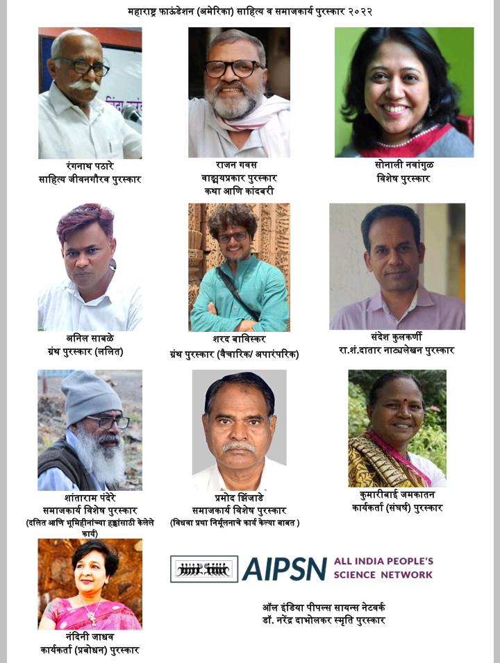 यासोबतच एक लाख रुपये आणि स्मृतिचिन्हाचा समावेश असलेला डॉ. नरेंद्र दाभोळकर स्मृती पुरस्कार ऑल इंडिया पीपल्स सायन्स नेटवर्क यांना, एक लाख रुपये आणि स्मृतिचिन्हाचा समावेश असलेला समाजकार्य विशेष पुरस्कार अनुक्रमे शांताराम पंदेरे (दलित आणि भूमिहीनांच्या हक्कासाठी केलेले कार्य), आणि प्रमोद झिंजाडे यांना (विधवा प्रथा निर्मूलनाचे कार्य केल्याबद्दल), पन्नास हजार रुपये आणि स्मृतिचिन्हाचा समावेश असलेला समाजकार्य पुरस्कार अनुक्रमे कुमारीबाई जनकातन (कार्यकर्ता संघर्ष) आणि नंदिनी जाधव (कार्यकर्ता प्रबोधन) यासाठी यांना जाहीर झाला आहे.