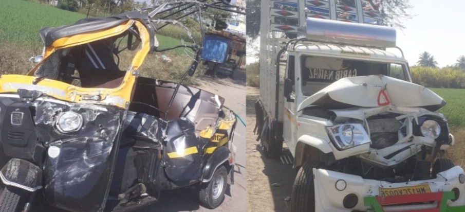 संगमनेर : शहरालगत खांडगाव फाटा येथे भरधाव पीकअप आणि रिक्षाच्या झालेल्या भीषण अपघातामध्ये दोघांचा मृत्यू झाला. तर चार जण गंभीर जखमी झाले. मृतात एका महिलेचा समावेश आहे.
